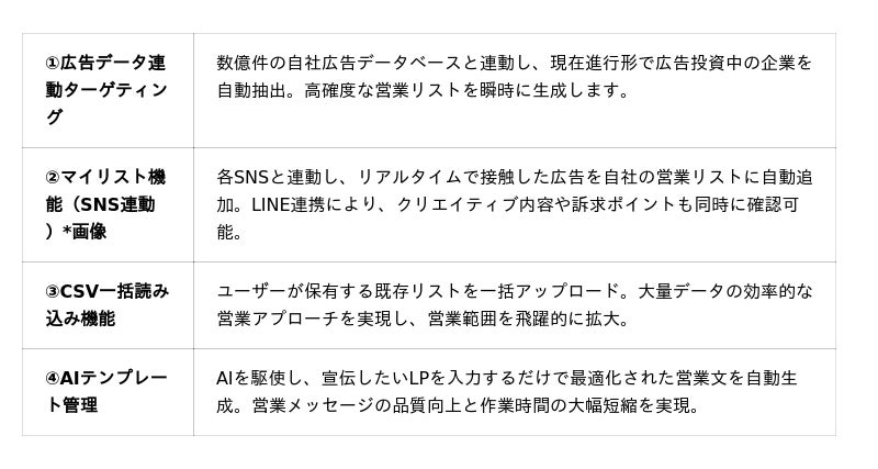 無制限の動的営業リスト提供にあります。