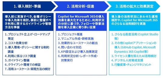 ・Copilot for Microsoft 365の導入効果を最大化するために、導入先企業の利用状況の分析に基づいたフォローや社内啓蒙活動を支援。