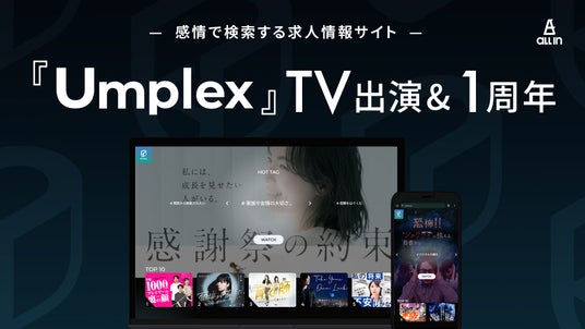 HRブランド戦略・HR戦略コンサルティングを手掛けるオールイン株式会社(本社:東京都渋谷区、代表取締役 前田優一)が運営する、感情で検索する中途向けの求人情報サイト『Umplex(アンプレックス)』はリリース1周年を迎えました。掲載求人は185記事を超え、着実な成長を遂げています。