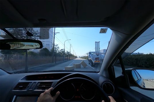 シーン5:落下・飛来物高速道路、国道などで良く起こる落下物、飛来物の危険性と回避方法を体験学習できます。