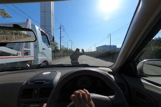 シーン7:路肩停車中の車両路肩に停車している車両の横を通過する際の危険性をドライバー側だけでなく、停車中の運転者としても危険の回避方法を学びます。