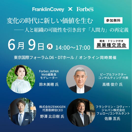 「時代の変化に新しい価値を生む~人と組織の可能性を引き出す「人間力」の再定義」(主催:フランクリン・コヴィー・ジャパン株式会社 協力:Forbes Japan) 会場:東京国際フォーラム D6・D7ホール / オンライン同時開催