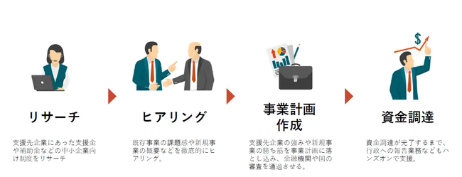 中小企業向けの補助金は申請するだけでも事前のID取得、書類の準備、計画書の作成など膨大な作業が必要となり、採択される事業計画書を作成するには専門的な知識が必要になります。また、採択された後も、経理書類や実績報告書の作成など事務業務が発生し、人手不足の中小企業には社内での内製化が困難であり、補助金に興味があっても申請できないという課題が存在していました。