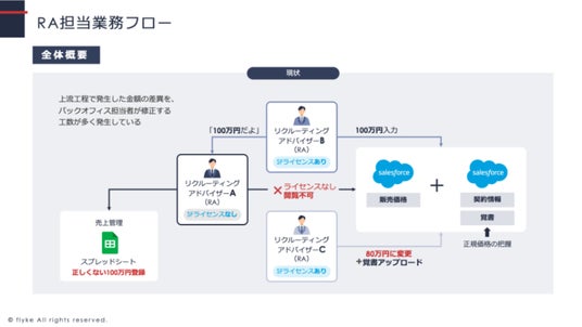 このような中、フライクの「業務を整理して全体最適な業務フローを考えてくれる」という業務コンサル的な要素に圧倒的な価値を感じ、フライクのサービス導入に至りました。