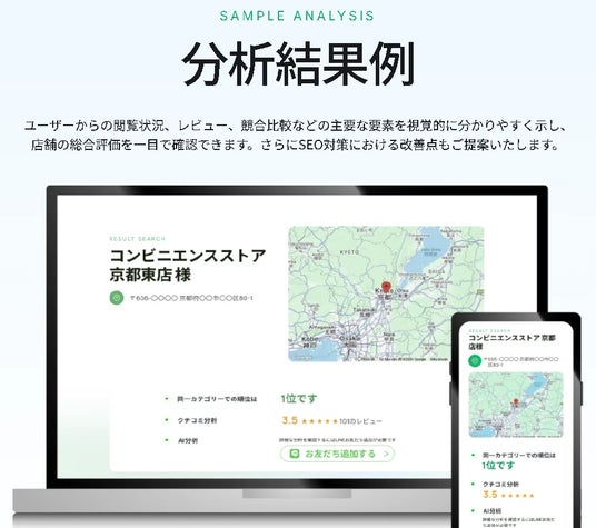 競合分析と改善提案:同地域の競合店との比較データを提供し、効果的なポジショニングの改善策を提案。