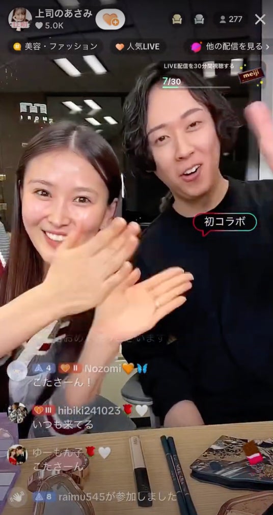 プロのメイクアップアーティスト『こた』様とColorkey,Flower Knowsブランドライブコマースタイアップの様子