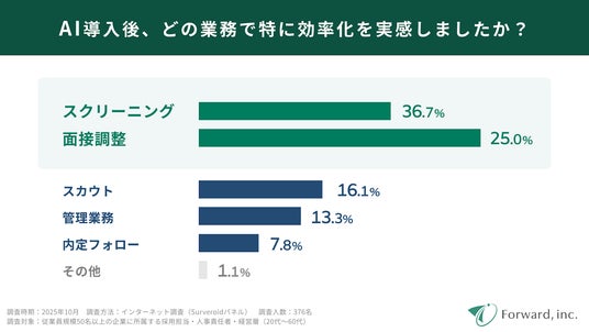 AI導入企業の7割が「業務工数削減」を実感。定型業務の自動化により、採用効率化は確実に進行。