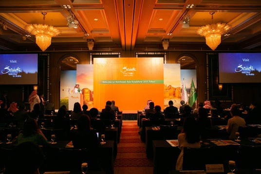 「サウジアラビアJAPANロードショー2023」では、サウジアラビア企業15社が出展するロードショーの企画・運営を担当。商談メインのプログラムとガラディナーの2部制プログラムを実施しました。
