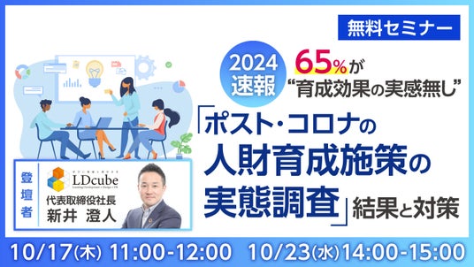 研修のスタイルにとらわれない企業向け人材育成サービスを提供する株式会社LDcube(本社:東京都千代田区、代表取締役社長:新井澄人、以下「当社」)は、めまぐるしい環境変化の中、人事ご担当者さま、経営者さまへ2023年に引き続き、2024年も同時期に2回目の「ポスト・コロナの人財育成施策の実態」について広く調査しました。