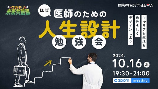 近年、医師のキャリアとライフスタイルは多様化が進んでおり、従来の大学医局や市中病院、勤務医や開業医といった選択肢にとらわれない、新しい人生設計が求められる時代になってきました。このような背景のもと、病院マーケティングサミットJAPANは「ほぼ医師のための人生設計勉強会~キャリアも生活も自分らしくデザインしよう!~」と題した勉強会を開催いたします。