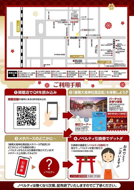 “巣鴨大鳥神社商店街 メタバース門前町” 会場案内図