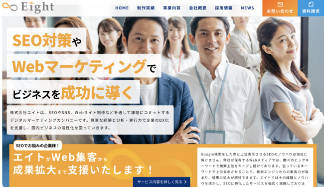 株式会社エイトは、SEOやSNS、Webサイト制作などを通して課題にコミットするデジタルマーケティングカンパニーです。豊富な経験と分析・実行力で企業のDX化を支援し、国内ビジネスの活性化を図っていきます。