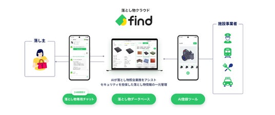 「落とし物クラウドfind」は、落とし主の「連絡するだけでも大変」「探しても見つからない」という悩み・不安を、テクノロジーの力によって解決するサービスです。常に最先端の技術を取り入れ、様々なサービスと連携することでアップグレードし、利便性の向上を図っています。また、遺失物管理だけでなく、返却率向上や管理者の業務効率化をはじめ、ユーザーとのコミュニケーションから警察署への連携まで、ワンストップで利用できる仕組みを提供しています。
