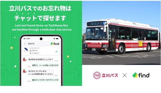 立川バス株式会社(本社:東京都立川市、取締役社長:鈴木 智、以下「立川バス」)は、株式会社find(本社:東京都港区、代表取締役CEO:高島 彬、以下「find」)が提供する「落とし物クラウドfind」を導入いたします。