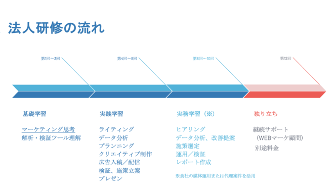 ■Webマーティング法人研修 カリキュラム(3ヶ月+サポート5ヶ月)