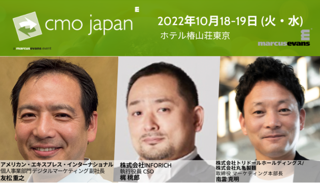 マーカス・エバンズ・イベント・ジャパン・リミテッド(本社:英国/日本支社代表:雪下 大輔、以下「マーカスエバンズ」)は、2022年10月18日-19日に全国全業種のマーケティング関連部門統括責任者が一堂に会するビジネスサミット『CMO Japan Summit 2022』を開催します