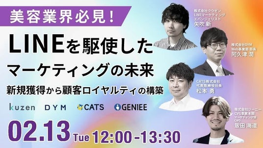 CATS株式会社(本社:東京都新宿区、代表取締役社長:松本 勇)は、2月13日(火)12:00~13:30にLINEマーケティング担当者向けの共催セミナーを開催いたします。本セミナーは、オンライン実施で参加無料となっております。