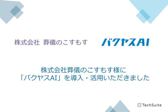 TechSuite株式会社(以下、「TechSuite」)は、「家族葬のセレモニーハウス」のブランドで神奈川県、東京都、北海道を中心に葬儀サービスを提供する株式会社葬儀のこすもす様(以下、「葬儀のこすもす様」)に対し、2024年2月より弊社サービス「