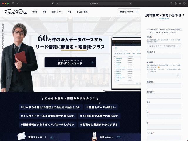 株式会社FLUED(株)FLUED(本社:東京都港区、代表取締役:松永 創)および(株)NADJA(本社:東京都新宿区、代表取締役:濱口雄太)は「HubSpot」などのCRM内のリード情報に、業種、従業員数、売上高、部署名などBtoBマーケティングやインサイドセールスに活用できるデータを付与するサービス「FINDFOLIO(ファインドフォリオ)」の提供を開始しました。