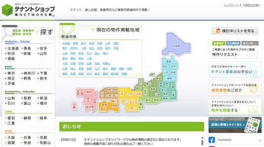 テナントショップネットワークより、全国のテナント物件をお調べいただけます。