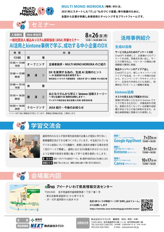 https://morioka-area-technology.jp/learning2024_1/それぞれご興味のある会のみの参加が可能です!ぜひご検討の上、Webからお申込みくださいませ。