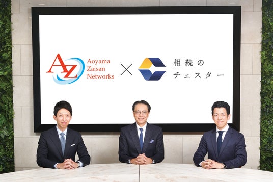中央:株式会社青山財産ネットワークス 代表取締役社長 蓮見 正純 左:税理士法人チェスター代表社員 荒巻 善宏 右:同 代表社員 福留 正明