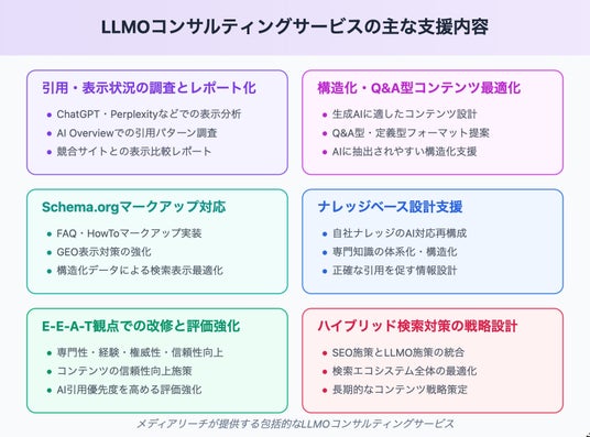 株式会社メディアリーチは、ChatGPT・AI Overview(GEO)など生成AI時代の検索行動に対応した、新たなSEO支援サービス「LLMOコンサルティングサービス」を提供開始。