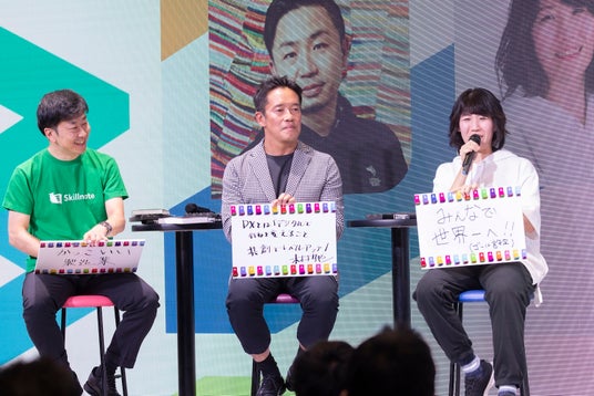 登壇者たちが今日のセッションを振り返る場面で、最後を飾ったFACTORY X 代表・神谷の言葉は「みんなで世界一へ!」。