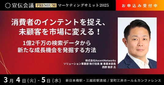 株式会社アセントネットワークス(以下、アセントネットワークス)は、宣伝会議マーケティングサミットPREMIUM2025にて、検索データを統合的に分析して消費者のインテントを可視化する消費者行動分析ツール「Listening Mind (リスニングマインド、以下Listening Mind) 」(URL: