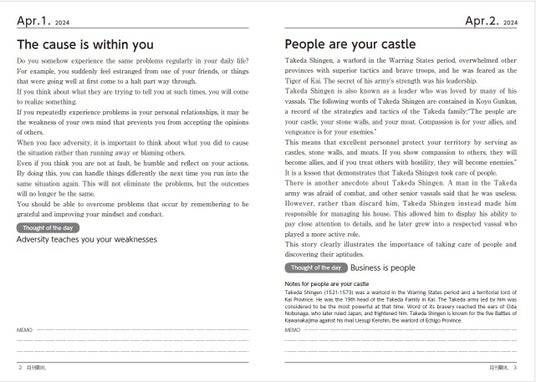 朝礼の専門誌『月刊朝礼』は、働く人のためのコミュニケーションツール。1日1話、スピーチのネタとなる話を1年間で12冊、365日分お届けします。働く人の「心のあり方」を育てる冊子として、日本国内2000社以上の企業や団体で導入されているほか、最近では海外からの問い合わせも増えています。2024年3月に創刊40周年。