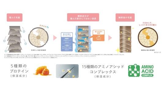 ※2(保湿成分)加水分解ウールキューティクルタンパク、加水分解ケラチン(羊毛)、ステアルジモニウムヒドロキシプロピル加水分解ケラチン(羊毛)、ヒドロキシプロピルトリモニウム加水分解ケラチン(羊毛)、加水分解ローヤルゼリータンパク