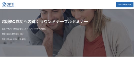 オプティ株式会社(東京都千代田区、代表取締役:淵上 暁)は、2025年1月31日(金)にストライプジャパン株式会社との共同セミナー「越境EC成功への鍵:ラウンドテーブルセミナー」を開催いたします。