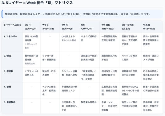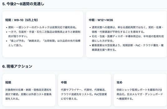 ■主な特徴1.公開情報をもとに物流影響を可視化地政学、輸送、エネルギーなどの外部情報を横断的に整理し、物流への影響を把握しやすい形にまとめます。