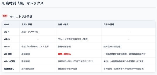 3.調達・物流・経営企画部門が短時間で全体像を把握可能日々の業務のなかでも活用しやすいよう、現場での情報収集負荷を下げながら、重要な変化を把握できる構成としています。