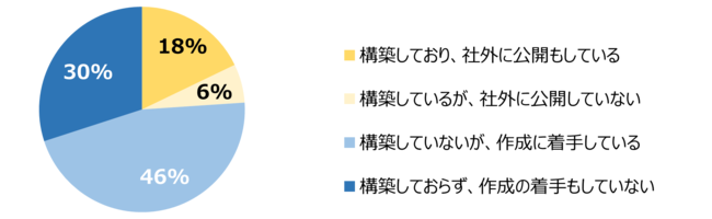 二つ目は「企業価値向上へのストーリーの構築」です。「ストーリーを構築していない」とする企業の割合は76%で4分の3に上っており、現状では目的達成に向けたストーリーを描くことなく、人的資本経営に取り組んでいる企業が多いことがうかがえます。