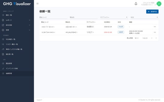 GHG Visualizer『依頼一覧画面』 ※開発画像