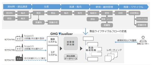 株式会社クラウディオ(以下、クラウディオ)は、クラウドに構築された製品構成情報およびサプライチェーンデータ収集基盤を提供することで、製品LCAの実現を支援するデジタルサービスとして、『GHG Visualizer LCAオプション』を本年2月から提供開始します。部材製造から完成品製造、物流、使用、リサイクル、そして廃棄までのライフサイクルフローを定義し、各プロセスで発生するCO2等のデータをサプライヤーなどのサプライチェーン関係者から収集、LCA分析のためのレポート生成までのプロセスを仕組み化して、製品LCAの取組みを通じた製品価値および企業価値向上の実現をサポートします。