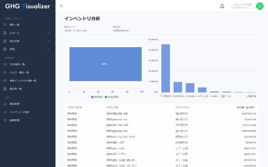 GHG Visualizer『インベントリ分析画面』 ※開発画像