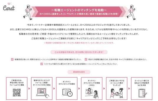 Carat株式会社(本社:東京都渋谷区、代表取締役社長:中屋まり、以下「Carat」)は、【働くをプロデュースし、自立した女性を増やす】ことをミッションとし、"絶対に採用が成功するチーム"を作り上げることを強みとしています。