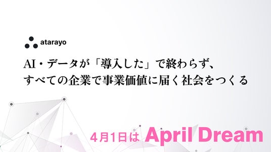 株式会社atarayo「April Dream」は、4月1日に企業がやがて届けたい夢を発信する、PR TIMESによるプロジェクトです。当社は、April Dreamに賛同しています。
