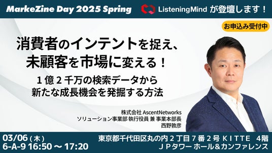 2025年3月6日(木)16:50~17:20に1億2千万の検索データから新たな成長機会を発掘するマーケティング手法を紹介