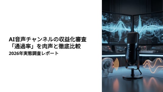 株式会社日本動画センター(本社:福岡県福岡市、代表取締役:山口直也)は、YouTubeにおけるAI音声活用と収益化通過率の実態を調査した資料『AI音声チャンネルの収益化審査「通過率」を肉声と徹底比較』を公開しました。
