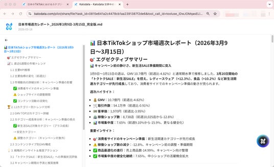株式会社Kalowave Japanあなた専属のTikTok EC データ分析アシスタント、Kalopilot