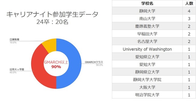 ・MARCH以上の学生を幅広く囲っており、大手志望からベンチャー志望の学生まで多数。