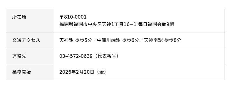 福岡拠点では、マーケティング戦略設計、広告運用、クリエイティブ制作、AI・データ活用支援までを一気通貫で提供し、九州エリア企業とのパートナーシップ拡大および採用強化を進めてまいります。