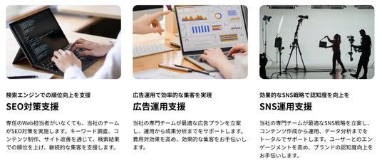 SEO対策支援、広告運用支援、SNS運用支援