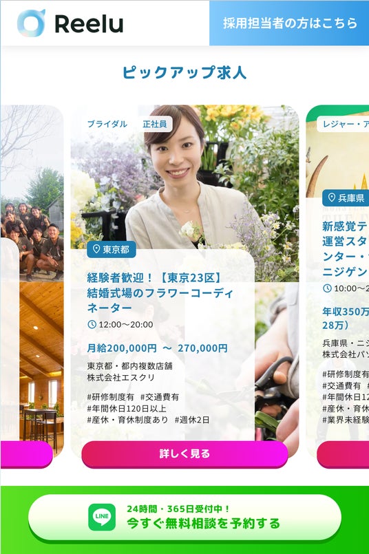 Reeluの求人サイトに無料で掲載されますのと、各社SNSや採用サイトにてご利用いただけます。
