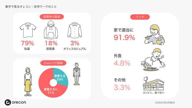 ◆「毎日スーツを着る」「仕事着に着替える」などせず私服で業務をしているスタッフが多いようです。お客様とのzoomでのミーティングでは上の服だけスーツにするなど、工夫をしている声もありました。
