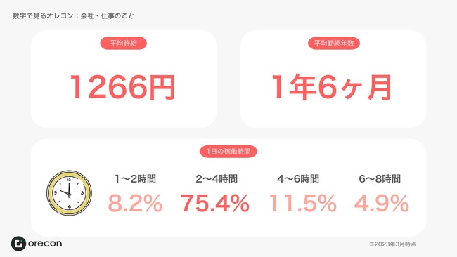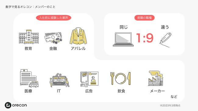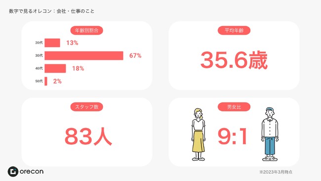 転勤や妊娠、出産、育児や介護などそれぞれの理由では「自分らしく働く」「やりたい仕事をする」ことを諦めざるを得ない人は多くいます。オレコンの社名の由来は、「オレの人生のコントロールを取り戻す」という想いから来ています。「好きな場所で、好きな時間に、好きな仕事ができる。通勤に往復で3時間をかけるくらいなら、大切な家族と過ごしたほうがいい。」オレコンのビジョンでもある縛られた働き方を捨てて、生き方をアップデートをスタッフ全員実現します。2023年4月18日には完全フルリモートで創設10周年を迎え、スタッフ数も80名を超えました。