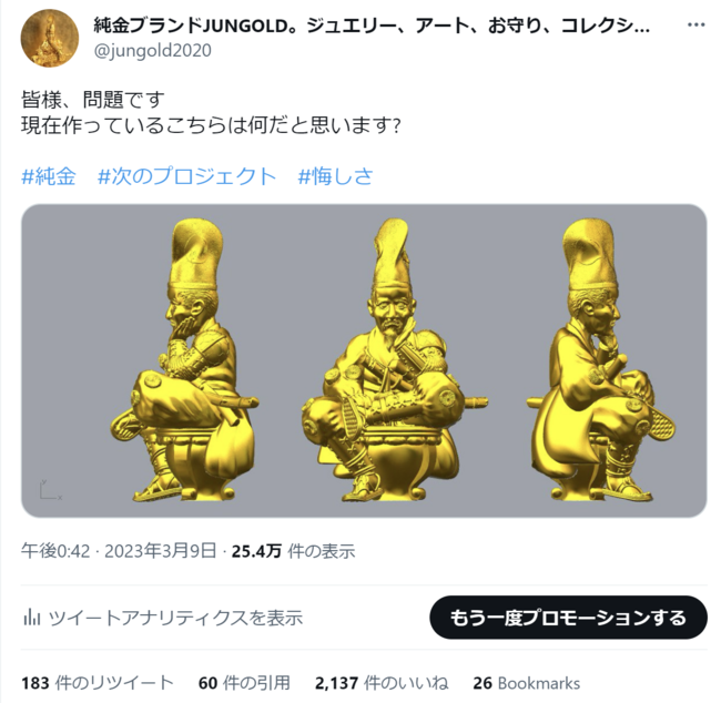 【悔しさ純度99.9%】無垢の純金で作った“徳川家康のしかみ像”